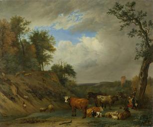 | Keywords: Herders met hun vee Rijksmuseum SK-A-318.jpeg  nl Herders met hun vee Onder een oude boom geeft een vrouw haar kind de borst achter haar een herder met een doedelzak Bij de boom zit een hond Voor hun en links op de helling van een heuvel grazen en rusten koeien schapen geiten een ezel en een paard drager Height cm 81 drager Width cm 97 5 exhibition history 2007-2007 Rembrandt and the Golden Age of Dutch Art Treasures from the Rijksmuseum - III - B Portland Oregon 2007-2007 Rembrandt and the Golden Age of Dutch Art Treasures from the Rijksmuseum - II - B Phoenix Arizona 2006-2007 Rembrandt and the Golden Age of Dutch Art Treasures from the Rijksmuseum - I - B Dayton Ohio Institution Rijksmuseum Technique oil canvas object history Acquisition 1808 object type PD-US PD-old-100 Data and photography rights All data and all images made available through the API are either in the public domain or are subject to a CC0 license https //www rijksmuseum nl/en/api/terms-and-conditions-of-use cc-zero place of creation http //www rijksmuseum nl/collectie/SK-A-318 Herders met hun vee Q17320077 Uploaded with GWToolset Herders met hun vee Rijksmuseum SK-A-318 http //www rijksmuseum nl/media/assets/SK-A-318 Images uploaded by Fæ Images from the Rijksmuseum Paintings by Paulus Potter in the Rijksmuseum Amsterdam Paintings after Paulus Potter |