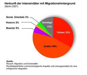| Keywords: Herkunft Intensivtäter.png de Herkunft von Intensivtätern in Berlin 2007 Migration und Kriminalität - Rechtstatsächliche und kriminologische Aspekte und Lösungsansätze für eine erfolgreiche Integration - Die Grundmenge beträgt 495 Intensivtäter own Data from http //www hss de/fileadmin/migration/downloads/071207_VortragReusch pdf page 6 Heierlon 2010-04-10 Criminal justice statistics Statistics of Berlin | ||||