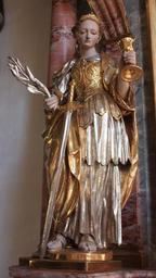 Keywords: Hermagor - Pfarrkirche - Nepomukaltar - Hl Barbara.jpg Hermagor - Nepomuk-altar sculpture of Saint Barbara Pfarrkirche der Stadt Hermagor - Nepomuk-altar Heilige Barbara own Neithan90 2010-11-05 PD Cc-zero Pfarrkirche Hermagor Saint-Barbara-sculptures in Carinthia