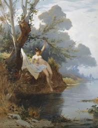 Keywords: Hermann Corrodi - Con la riva del fiume.jpg Artwork creator Hermann David Salomon Corrodi oil canvas panel cm 47 36 5 object history Kunst-Passage C van Waegeningh Düsseldorf<br/>Purchased by the grandparents of the present owner from the above circa 1971 credit line H Corrodi Roma ~ signature lower left accession number http //www sothebys com/de/auctions/ecatalogue/2011/european-paintings/lot 241 html Sotheby's London 22 November 201 lot 241 PD-old-auto-1923 1905 Hermann Corrodi Images from Sotheby's