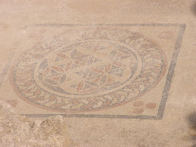 Keywords: Herodion111.jpg mosaic floor at Herodium down town Public bathing with form of flower of Life geometrical pattern Own 2007-10-13 Amit A Herodium Flower of Life in Israel Mosaics in Israel