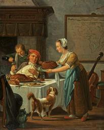 | Keywords: Herr an reich gedecktem Tisch 18 Jh.jpg Herr an einem reich gedeckten Tisch in einem holländischem Interieur möglicherweise als Darstellung des Geschmackssinnes gedacht century 18 Oil on canvas cm 40 31 5 accession number object history credit line http //www bassenge com/ PD-old-100 18th-century unidentified painters 18th-century paintings location missing 18th-century paintings not categorised by year Images from Galerie Bassenge 18th-century genre paintings 18th-century paintings of dogs 18th-century way of life Maps of Africa in art Cellos in art Meals in art Paintings of musical instruments People in rooms in art People reaching objects People with maps in art Domestic workers in the Netherlands Domestic workers in art |