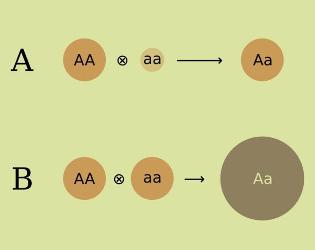 | Keywords: Heterosis.svg Two leading hypotheses explaining the basis for fitness advantage in heterosis The deleterious recessive genes avoidance hypothesis A and the overdominance hypothesis B Self-made in Inkscape; an attempt to explain en Image Heterosis jpg with more graphics than text 2007-08-20 User Mysid Heredity |