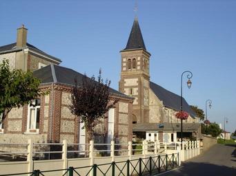 Keywords: Heuqueville.jpg Au centre du village d'Heuqueville Seine-Maritime -- Photo amateur prise par moi-même 2005-09-07 own assumed Touriste Heuqueville Seine-Maritime Unidentified patron saint churches in Seine-Maritime Street lights in Seine-Maritime