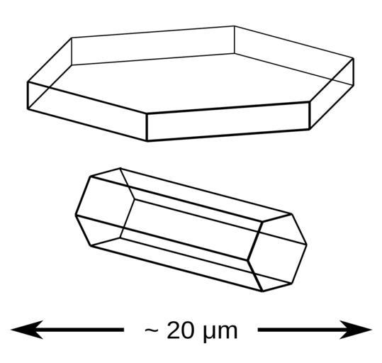 | Keywords: Hexagonal Ice Crystals.svg en A hexagonal ice plate and hexagonal ice prism or needle The reported size of the crystals vary greatly Refer below for some quotes from the web Created with Inkscape Free open source Halos are due to randomly oriented ice crystals less that 20 microns in diameter that are abundant in the atmosphere http //www physics isu edu/weather/kmdbbd/notesc4 pdf Halos - appear with ice clouds Crystals have to be small 15 or 20 microns The 'rainbows' thrown by lead crystals are more similar to sundogs then rainbows and are more Sun dogs are generated when light interacts with hexagonal plate like ice crystals that are approximately 30 microns in size and fall horizontally http //cimss ssec wisc edu/wxwise/class/optics html A 22 degree halo is a ring of light 22 degrees from the sun or moon and is the most common type of halo observed and is formed by hexagonal ice crystals with diameters less than 20 5 micrometers http //www weatherpictures nl/halo html Ice Fog Also called ice-crystal fog frozen fog frost fog frost flakes air hoar rime fog pogonip A type of fog composed of suspended particles of ice; partly ice crystals 20 to 100 micron in diameter but chiefly especially when dense ice particles about 12 “20 micron in diameter formed by direct freezing of supercooled water droplets with little growth directly from the vapor It occurs at very low temperatures and usually in clear calm w http //www weather gov/glossary/index php letter i it ™s orientation is crucial as well When ice crystals are very small <100 microns or so they are oriented more or less in any old direction in space http //www met reading ac uk/Data/CurrentWeather/wcd/blog/the-parry-arc/ A ring of light 22 degrees from the moon or sun is the most common type of halo observed from earth and is formed by millions of hexagonal ice crystals with diameters less than 20 5 micrometers within the clouds Read more Halo Moon ” Infoplease com http //www infoplease com/askeds/halo-moon html ixzz1Dn7YuOoE http //www infoplease com/askeds/halo-moon html Electron microscopy of etched and nascent surfaces of single ice crystals shows a characteristic microstructure of elongated hexagonal prisms The small hexagonal units vary greatly in size with an expected width of the order of 3 microns and a length of 6 microns http //ieeexplore ieee org/Xplore/login jsp url http 3A 2F 2Fieeexplore ieee org 2Fiel5 2F4915369 2F5121058 2F05121063 pdf 3Farnumber 3D5121063 authDecision -203 Ice crystals found in the cirrus-family of clouds that form halos are usually hexagonally shaped columns rather similar to the shape of a common lead pencil but much smaller around 15-25 micrometres in diameter http //www suite101 com/pages/article_old cfm/science_sky/66186 own Dave3457 2011-02-10 22°-Halo Ice crystals Halo diagrams |