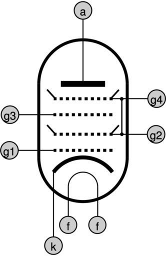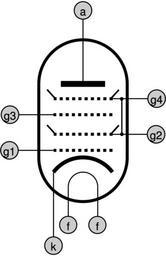 Keywords: Hexode-Symbol de.svg Symbol fuer eine Hexode a - Anode k - Kathode f - Heizung g1 - Steuergitter g2 - Schirmgitter g3 - Steuergitter g4 - Schirmgitter gezeichnet mit Inkscape 2007-03-23 erstellt von de User Fgli SVG vacuum tubes