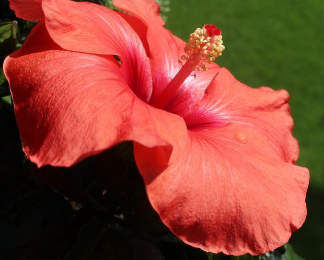 Keywords: hibiscus mallow blossom bloom red pistil gloss detail
