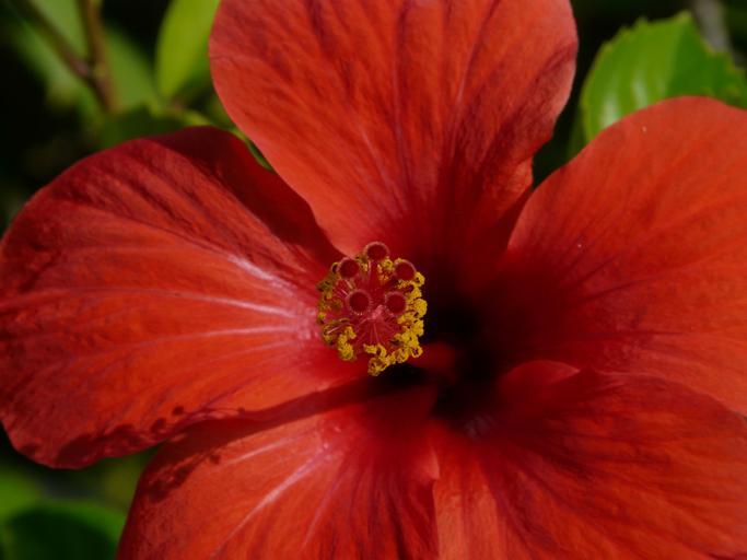 Keywords: hibiscus marshmallow mallow malvaceae ornamental plant ornamental flower blossom bloom flower red plant hibiscus flower close petals stamens filigree stamp pollen