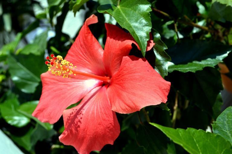 Keywords: hibiscus red blossom bloom flower nature stamens ornamental plant bloom pistil spring summer exotic plant close