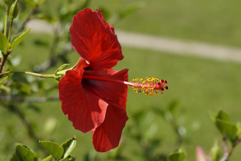 Keywords: hibiscus red blossom bloom flower mallow malvaceae plant exotic pistil summer tropical