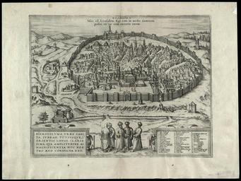 Keywords: Hierosolyma, vrbs sancta. Ivdeae, totivsove Orientis longe clarissima, qva amplitvdine ac magnificentia hoc nostro aevo conspicva est.jpg מפה ש ירוש י http //web nli org il/sites/NLI/Hebrew/digitallibrary/Laor-Collection/Pages/maps aspx en Jerusalem the Holy City by far the most famous city of Juda and the East in her present size and greatness From the German edition of Braun and Hogenberg Civitates Orbis Terrarum 1576 he ירוש י העיר הקדושה העיר המפורסמת בערי יהודה והמזרח מראה ירוש י המודרנית מן המזרח מתוך מהדורה גרמנית ש ספר ש בראון והוגנברג - ערי כדור הארץ 1576 Dimensions 324x413mm http //web nli org il/sites/NLI/Hebrew/digitallibrary/pages/viewer aspx presentorid NLI_MAPS_JER DocID NNL_MAPS_JER002368083 Click to enlarge http //web nli org il/sites/NLIS/en/Maps The Eran Laor Cartographic Collection National Library of Israel 2015-12-03 19 28 53 http //web nli org il/sites/NLI/English/Pages/default aspx The National Library of Israel PD-old Old maps of Jerusalem GLAM National Library of Israel Laor collection |