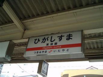 Keywords: Higashi-Suma Sta Name.JPG Higashi-Suma Sta Name person of photography Nozomikobe/25 Jun 2006 須磨駅の駅名標(撮影 Nozomikobe/25 Jun 2006 Higashi-Suma Station Train station signs in Hyogo prefecture