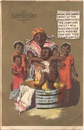 Keywords: women mothers & children motherschildren bathing wash tubs washtubs household soap householdsoap ethnic groups ethnicgroups ethnic stereotypes ethnicstereotypes racism afro-americans afroamericans laundry dressing & grooming equipment dressinggroomingequipment cosmetics & soap cosmeticssoap victorian tradecards victoriantradecards miami university libraries miamiuniversitylibraries muohio digital collections muohiodigitalcollections Persistent URL: digital.lib.muohio.edu/u?/tradecards,4580 Subject (TGM): Women; Mothers & children; Bathing; Wash tubs; Household soap; Ethnic groups; Ethnic stereotypes; Racism; Afro-Americans; Laundry; Dressing & grooming equipment; Cosmetics & soap; Persistent URL: digital.lib.muohio.edu/u?/tradecards,4580 Subject (TGM): Women; Mothers & children; Bathing; Wash tubs; Household soap; Ethnic groups; Ethnic stereotypes; Racism; Afro-Americans; Laundry; Dressing & grooming equipment; Cosmetics & soap; |