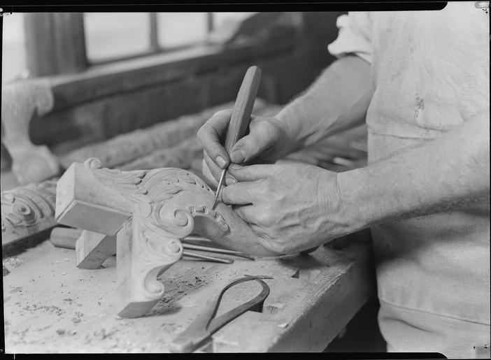 | Keywords: High Point, North Carolina - Upholstering. Tomlinson Chair Manufacturing Co. Hand carver - close-up of man - chair... - NARA - 518494.tif Scope and content General notes 518494 Local identifier 69-RP-221 Federal Works Agency Work Projects Administration National Research Project ca 1941 - ca 1942 NARA-Author Hine Lewis Wickes 1874-1940 Photographer 1122914 <br /> High Point Guilford county North Carolina United States North and Central America inhabited place 3362615 35 95 -80 <br /> Still Picture Records Section Special Media Archives Services Division NWCS-S National Archives at College Park 8601 Adelphi Road College Park MD 20740-6001 1936 - 1937 Record group Record Group 69 Records of the Work Projects Administration 1922 - 1944 Record group ARC 398 Lewis Hine Photographs for the National Research Project compiled 1936 - 1937 Series ARC 518291 File unit File unit ARC Variant control numbers NAIL Control Number NWDNS-69-RP-221 yes Other versions <gallery> File High_Point _North_Carolina_-_Upholstering _Tomlinson_Chair_Manufacturing_Co _Hand_carver_-_close-up_of_man_-_chair _-_NARA_-_518494 tif tif File High_Point _North_Carolina_-_Upholstering _Tomlinson_Chair_Manufacturing_Co _Hand_carver_-_close-up_of_man_-_chair _-_NARA_-_518494 jpg jpg </gallery> NARA-cooperation PD-USGov Furniture making chair making Legs furniture components Furniture makers from the United States chair makers Woodcarvers from the United States People of North Carolina High Point North Carolina Furniture manufacturers of the United States NARA TIF images with categorized JPGs |