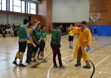 Keywords: court game sport indoor For one week, Ansbach Middle/High School was turned into "Hogwarts School of Witchcraft and Wizardry," based on J.K Rowling's Harry Potter books. The highlight and culmination of the week-long project, hosted as part of "Read across America Week," was a Quidditch tournament and the award ceremony for the house cup. (U.S. Army photos: Bianca Sowders, USAG Ansbach Public Affairs) For one week, Ansbach Middle/High School was turned into "Hogwarts School of Witchcraft and Wizardry," based on J.K Rowling's Harry Potter books. The highlight and culmination of the week-long project, hosted as part of "Read across America Week," was a Quidditch tournament and the award ceremony for the house cup. (U.S. Army photos: Bianca Sowders, USAG Ansbach Public Affairs)