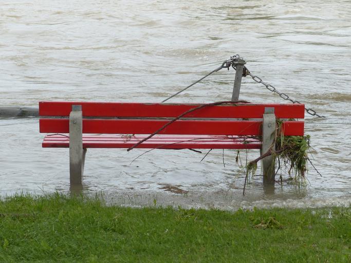 Keywords: high water park bench flooded red natural disaster flotsam and jetsam flood flooding river riverside water disaster flood disaster storm force of nature civil protection water level flood of the century climate change climate protection environmental protection