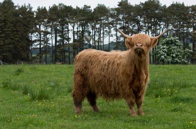 Keywords: highland beef highlander model fur meadow pasture cow strong horns grass muscular cool stylish fun scotland summer trees nature landscape