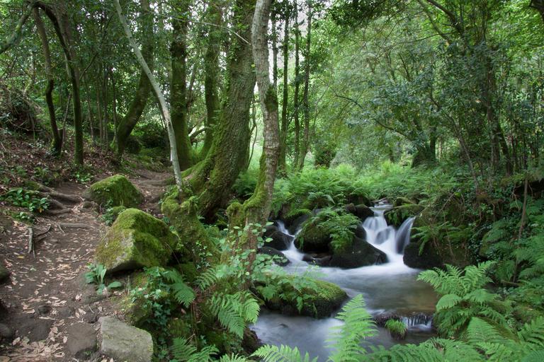 Keywords: hiking landscape route da auga nature mountain trail path peace calm spain rides trees river water green leaves campestre walk