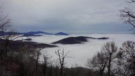 Keywords: Nature Mountain Trail National Park Trekking Hiking Skyline USA Hike Camping Campground Shenandoah Valley Sky Hawk hoarfrost Marys Rock Winter Fog