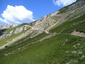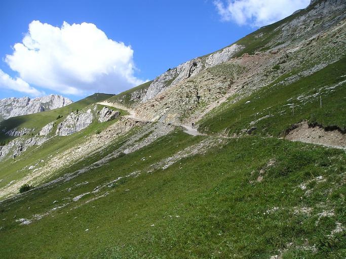 Keywords: hiking trail away mountains dolomites south tyrol meadow sky