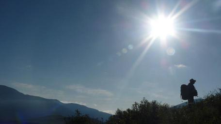 Keywords: hiking trekking blue sky sun landscape wilderness scenery natural wild outdoor environment view scenic land nature adventure hike