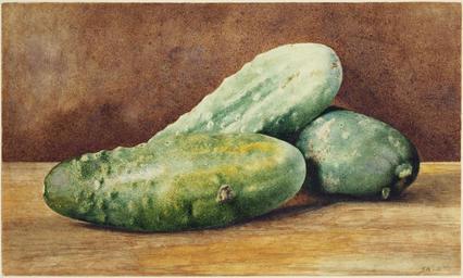 Keywords: Hill, John William, Cucumbers, ca. 1860.jpg en John William Hill American 1812 “1879 Cucumbers ca 1860 Watercolor on cream wove paper 18 9 x 31 7 cm 7 7/16 x 12 1/2 in Museum purchase Laura P Hall Memorial Fund x1991-73 Around 1855 after reading Ruskin ™s influential Modern Painters John William Hill changed course and adopted a style closer to that of his son John Henry Hill a Pre-Raphaelite artist The elder Hill began to paint watercolors directly from nature employing a stipple technique of tiny dots of color in place of his previous method of broad washes cohered by an underlying drawing Compare Cucumbers with the artist ™s earlier Broadway Looking South from Liberty Street on view in the previous gallery The often down-to-earth subjects of Hill ™s later work accord well with the Ruskinian precept that the most compelling beauty is found in the most ordinary objects 1860 Princeton University Art Museum John William Hill other versions PD-Art Uploaded with UploadWizard American art in the Princeton University Art Museum 1860 American drawings in the Princeton University Art Museum 1860 Drawings in the Princeton University Art Museum 1860 Watercolor paintings in the Princeton University Art Museum 1860 Watercolor paintings by John William Hill Still-life drawings Cucumbers in art |