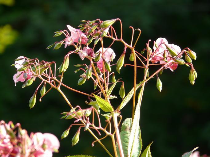 | Keywords: himalayan balsam plant flower blossom bloom pink impatiens glandulifera indian springkraut emscher orchid wuppertal orchid balsaminengewaechs balsaminaceae ornamental plant neophyte flower bank balsam capsules popping up burst dissemination mechanism ripe seeds clench |