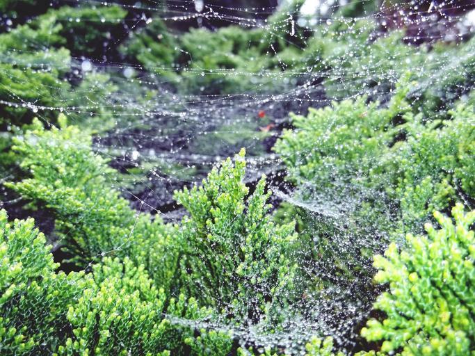 Keywords: hinoki cypress cypress tree tree green plant nature garden chamaecyparis obtusa hinoky cypress shell cypress periwinkle scaly flora close cobweb dew raindrop drip