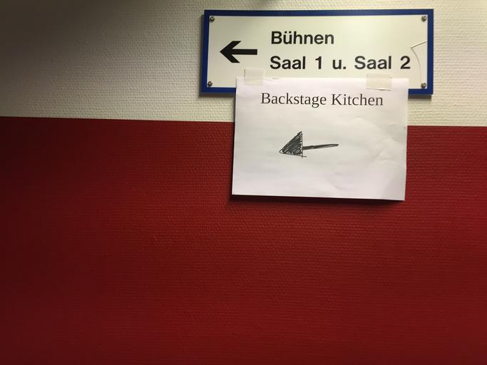 | Keywords: Hinweisschild Bühne Saal 1 u. 2 im CCH.jpg Hinweisschild im Congress Center Hamburg zu Saal 1 und 2 und Backstage kitchen in den hinteren Gängen Fotografiert zum 31C3 own ubahnverleih 2014-12-27 51 4 15 1 N 13 45 8 87 E alt 118_source exif_heading 342 424615 cc-zero Uploaded from Mobile iOS 1 0 10 Congress Center Hamburg 31C3 |
