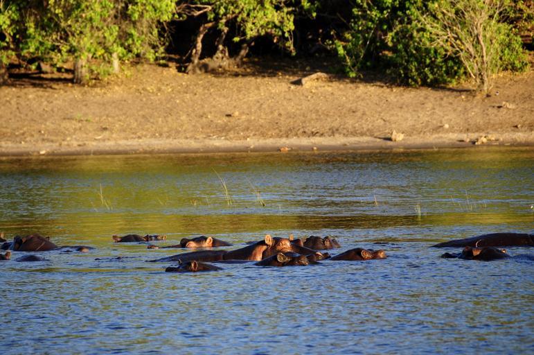 Keywords: hippo hippopotamus river water chobe botswana africa animal wild safari green grey blue