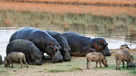 Keywords: hippopotamus africa namibia nature dry national park animals eat warthogs