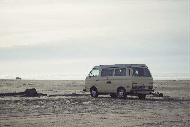 Keywords: hippy van beach sand