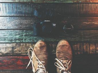 Keywords: hipster shoes kicks threads camera photographer wood floor
