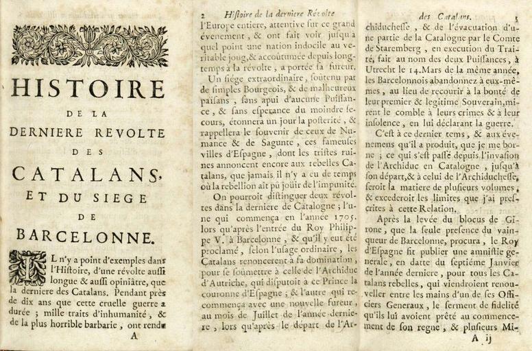 | Keywords: Histoire de la derniere révolte des catalans pag 1 2 3.jpg fr istoire de la derniere revolte des catalans et du siege de Barcelonne 2013-03-13 07 11 14 BC http //mdc cbuc cat/cdm4/document php CISOROOT /llibimps16 CISOPTR 30910 CISOSHOW 30726 Lyon Thomas Amaulry PD-old Books from France Catalonian army Siege of Barcelona 1713-1714 Rafael Casanova i Comes 1715 books Books about Catalonia | ||||