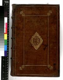 Keywords: Historie of Guicciardin - Upper cover (c67f7).jpg Style Armorial Trade binding Panel design; Caption Upper cover; Colour Brown; Edge Unspecified exhibition history Decorative Technique Tooled in blind Tooled in gold; Cover Material Calf With the arms of Queen Elizabeth I probably a trade binding since the arms on the cover are surrounded by the initials W and S probably corrresponding to the signature William Stevinton which is written in ink on the title page Spine tooled in gold Five raised bands Binding slightly restored original endleaves replaced object history Text 1599; London; Tudor arms object type Cc-zero place of creation Binding England place of discovery To research armorials see British Armorial Bindings Database sponsored jointly by the Bibliographical Society and the University of Toronto http //armorial library utoronto ca British Library image http //www bl uk/catalogues/bookbindings/LargeImage aspx RecordId 020-000009976 ImageId ImageId 44593 Copyright BL Historie of Guicciardin Uploaded with GWToolset Historie of Guicciardin - Upper cover c67f7 http //www webarchive org uk/bldatasets/bindings/10875_4 jpg Bookbinding 16th-century bookbinding British Library Bookbindings |
