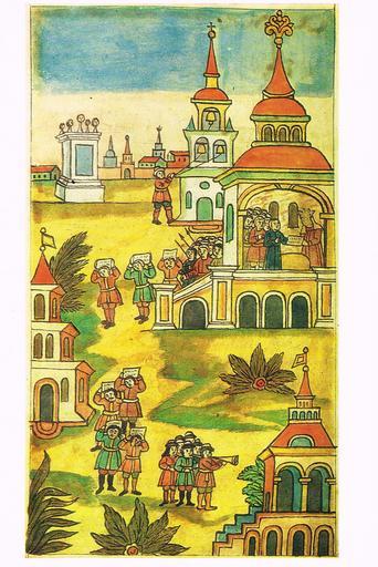 | Keywords: History of Peter I (Krekshin) - Tsarevna Sofia giving charters.jpg  ru Ца евна Софья  аздает г амоты ст ельцам за их службы После 29 мая 1682 года ца евна п одолжила ук еплять свою связь со ст ельцами По ее п иказу каждому было  оздано из казны по 10  ублей Ст ельцы получив деньги и жалованные г амоты то жественно идут по К емлю шествие возглавляют музыканты то жественно бьют колокола  иниатю а из  укописи 1-й пол 18 века Исто ия Пет а I соч П К екшина Соб ание А Ба ятинского ГИ century 18 Э Шульгина - Д евне усская миниатю а в Госуда ственном Исто ическом музее Выпуск VI П К екшин - Исто ия Пет а I 1982 P Krekshin PD-Art History of Peter I Krekshin Files uploaded by Shakko from various sources Uploaded with UploadWizard Moscow Uprising of 1682 Historical images of Moscow Kremlin |