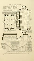 Keywords: Historyofarchite00flet 0212.jpg en The Basilicas erected as halls of justice and as exchanges for merchants comprise some of the finest buildings erected by the Romans and bear witness to the importance of law and justice in their eyes These buildings are also interesting as a link between Classic and Christian architecture The usual plan was a rectangle whose length was two or three times the width Two or four rows of columns' ran through the entire length resulting in three or five aisles and galleries were usually placed over these The entrance was at the side or at one end and the tribunal at the other on a raised dais generally placed in a semicircular apse which was sometimes partly cut off from the main body of the building by columns Ranged round the apse were seats for the assessors that in the centre which was elevated above the rest being occupied by the Praetor or Questor In front of the apse was the altar where sacrifice was performed before commencing any important business The building was generally covered with a wooden roof and the exterior seems to have been of small pretensions in comparison with the interior Trajan's the Ulpian Basilica Rome A D 98 Nos 47 58 B E of which Apollodorus of Damascus was the architect was a fine example of the wooden roofed type Entered from Trajan's Forum it had a central nave 87 feet wide with double aisles each 23 feet 9 inches wide and an internal length excluding the apses of 385 feet The total internal height was about 120 feet The columns on the ground story separating the nave and aisles were of red granite from Syene with white marble Corinthian capitals At each end were semicircular apses reached by flights of steps having sacrificial altars in front of them Galleries were formed over the side aisles reached by steps as shown on the plan Adjoining the Basilica were the Greek and Latin libraries and Trajan's famous Column stood in an open court between them ca Les basÃliques erigides com a sales de justÃcia i llotges d ™intercanvis per als comerciants comprenen alguns dels millors edificis construïts pels romans i donen testimoni de la importà ncia del dret i la justÃcia als seus ulls Aquests edificis són també interessants com un vincle entre l'arquitectura clà ssica i cristiana El pla usual era un rectangle la longitud era de dues o tres vegades l'amplada Dos o quatre fileres de columnes corrien per tota la longitud el que resulta en tres o cinc naus i galeries que es col·loquen generalment sobre aquestes L'entrada estava al lateral o en un extrem i el tribunal en l'altre en una tarima elevada generalment se situa en un absis semicircular que va ser de vegades en part aïllada del cos principal de l'edifici per columnes Oscil·lant al voltant de l'absis hi havia seients per als avaluadors perquè en el centre que s'eleva per sobre de la resta sent ocupat pel pretor o qüestor Davant de l'absis estava l'altar on el sacrifici es duia a terme abans d'iniciar qualsevol negoci important L'edifici generalment era cobert amb un sostre de fusta i l'exterior sembla haver estat de poques pretensions en comparació amb l'interior La BasÃlica de Trajà La Ulpià Roma 98 dC de la qual Apolodoro de Damasc va ser l'arquitecte era un bon exemple del tipus amb sostre de fusta Entrant des del Fòrum de Trajà tenia una nau central de 87 peus d'ample amb passadissos dobles cadascuna de 23 peus 9 polzades d'ample i una longitud interna amb exclusió dels absis de 385 peus L'alçada interior total va ser d'al voltant de 120 peus Les columnes que separen la nau i els passadissos eren de granit vermell de Siena amb marbre blanc als capitells corintis A cada extrem hi havien absis semicirculars on es pujava mitjançant trams de graons que tenien els altars de sacrifici al davant d'ells les galeries es van formar al damunt dels passadissos laterals assolits per etapes com es mostra en el pla Al costat de la basÃlica hi havien les biblioteques gregues i llatines i la famosa Columna de Trajà de bell mig d ™un pati obert entre les biblioteques es Las basÃlicas erigidas como salas de justicia y palcos de intercambios para los comerciantes comprenden algunos de los mejores edificios construidos por los romanos y dan testimonio de la importancia del derecho y la justicia en sus ojos Estos edificios son también interesantes como un vÃnculo entre la arquitectura clásica y cristiana El plan usual era un rectángulo la longitud era de dos o tres veces el ancho Dos o cuatro hileras de columnas corrÃan por toda la longitud lo que resulta en tres o cinco naves y galerÃas que se colocan generalmente sobre éstas La entrada estaba en el lateral o en un extremo y el tribunal en el otro en una tarima elevada generalmente se sitúa en un ábside semicircular que fue a veces en parte aislada del cuerpo principal del edificio por columnas Oscilando alrededor del ábside habÃa asientos para los evaluadores para que en el centro que se eleva por encima del resto siendo ocupado por el pretor o cuestor Ante el ábside estaba el altar donde el sacrificio se llevaba a cabo antes de iniciar cualquier negocio importante El edificio generalmente era cubierto con un techo de madera y el exterior parece haber sido de pocas pretensiones en comparación con el interior La BasÃlica de Trajano La Ulpiana Roma 98 dC de la que Apolodoro de Damasco fue el arquitecto era un buen ejemplo del tipo con techo de madera Entrando desde el Foro de Trajano tenÃa una nave central de 87 pies de ancho con pasillos dobles cada una de 23 pies 9 pulgadas de ancho y una longitud interna con exclusión de los ábsides de 385 pies La altura interior total fue de alrededor de 120 pies Las columnas que separan la nave y los pasillos eran de granito rojo de Siena con mármol blanco en los capiteles corintios En cada extremo habÃan ábsides semicirculares donde se subÃa mediante tramos de escalones que tenÃan los altares de sacrificio en frente de ellos las galerÃas se forma