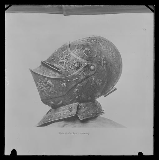 | Keywords: Hjälm med kam till paradrustning som tillhört Erik XIV - Livrustkammaren - 53712.tif LSH artwork Creator Étienne Delaune Arboga faktori Eliseus Libaerts sv Sluten hjälm med kam hjälmklocka visir och hjälmkrage av två lameller Baktill en plymhållare Hjälmen kännetecknas framförallt av sin mycket rika dekor som rustningens övriga delar Hela ytan är täckt av figurer i höjd relief hela bakrundens yta är täckt av punsad dekor De olika fälten delas av med en bård i guld På hjälmens kam samt på visir och hjälmklocka förekommer även beslagsornamentik Vissa av skruvarna är av nyare datum Rustningen består av 18 delar enligt nuvarande numrering levererades till Erik XIV 1562 Materialet är stål med etsad och driven dekor samt pålagt guld Tillverkad vid Arbogas vapenfaktori och dekorerad i Antverpen av guldsmeden Eliseus Lieberts efter förlagor från den franske konstnären Etienne Delaune Hela garnityret är dekorerat med mytologiska gestalter fjättrade fångar stridsscener och trofégrupper samt Vasavapnet tre Kronors-vapnet och Folkungalejonet Rustningen kan tex ha använts vid något av de många festtåg som kungen arrangerade både av krigisk och fredlig art Ett av dessa ägde rum efter fälttåget mot Danmark 1564 då Erik red in i Stockholm i stor triumf Han medförde både troféer och krigsfångar som utgjorde en levande illustration till rustningsgarnityrets dekor Häststjärnan levererades ett år senare 1563 och har en annan dekor den sändes som ett varuprov på dekor och Erik beställde ytterligare minst en rustning från Antwerpen När Lieberts personligen skulle leverera den nya rustningen blev både han och rustningen tillfångatagna i Danmark under pågående krig Erik försökte få rustning och Lieberts fria men misslyckades Guldsmeden David Cnoep som var verksam vid det danska hovet blev ägare till rustningen Cnoeps son sålde den till Christian II av Sachsen Rustningen finns idag i Historisches Museum i Dresden och är dekorerad med Vasa- och Tre-Kronorvapnet original caption 1562 steel g 3195 size mm 290310 350 270 LRK Erik XIV av Sverige Sweden - A Royal Treasury 1988-1989 Tre Konungar på Åbo slott 1993 Örnen och de tre kronorna 2003 Parures Triomphales 2003 Sous l'égide de Mars Armures des Princes d'Europe' tid arbetstitel Armures et décors maniéristes francais 2011 Musée de l'Armée Maktspel - ett kostymdrama i Livrustkammaren 2014-2015 Livrustkammaren Livrustkammaren nya basutställning 2018 LRK bas 2018 Livrustkammaren place of origin Antwerpen ; Arboga / BE original filename LN_E02252 62740 inventory number LRK 26072 53712 CC0 Hjälm med kam till paradrustning som tillhört Erik XIV - Livrustkammaren - 53712-negative tif <gallery caption Different images of same object > File Sluten hjälm till paradrustning som tillhört Erik XIV - Livrustkammaren - 47403 tif File Rustning - Livrustkammaren - 5330 tif File Hjälm Libaerts 26072 - Livrustkammaren - 13160 tif File Sluten hjälm till paradrustning som tillhört Erik XIV - Livrustkammaren - 1013 tif File Erik XIVs rustning från 1562 - Livrustkammaren - 73817 tif File Vänster sida av hjälm till XIVs rusting - Livrustkammaren - 39576 tif File Sluten hjälm till paradrustning som tillhört Erik XIV - Livrustkammaren - 55964 tif File Sluten hjälm - Livrustkammaren - 17343 tif File Sluten hjälm - Livrustkammaren - 60127 tif File Sluten hjälm - Livrustkammaren - 25900 tif File Sluten hjälm - Livrustkammaren - 77261 tif File Rustning - Livrustkammaren - 82376 tif File Sluten hjälm till paradrustning som tillhört Erik XIV - Livrustkammaren - 43800 tif File Erik XIV paradrustning från 1562 Pressbilder till utställningen Maktspel - Livrustkammaren - 96575 tif File Erik XIV rustning och sköld från 1562 i manieristisk stil - Livrustkammaren - 31016 tif File Sluten hjälm - Livrustkammaren - 51565 tif File Erik XIVs rustning från 1562 - Livrustkammaren - 38845 tif File Sluten hjälm - Livrustkammaren - 8763 tif File Sluten hjälm till paradrustning som tillhört Erik XIV - Livrustkammaren - 52360 tif File Sluten hjälm - Livrustkammaren - 204 tif File Sluten hjälm - Livrustkammaren - 77247 tif File Höger sida av hjälm till Erik XIVs rusting - Livrustkammaren - 48134 tif File Rustning tillhörande Erik XIV - Livrustkammaren - 22454 tif File Sluten hjälm - Livrustkammaren - 68688 tif File Hjälm med kam till paradrustning som tillhört Erik XIV - Livrustkammaren - 2349 tif File Sluten hjälm - Livrustkammaren - 8781 tif File Sluten hjälm - Livrustkammaren - 60126 tif File Sluten hjälm - Livrustkammaren - 68702 tif </gallery> <gallery caption Related objects > File Ryggharnesk till Erik XIVs paradrustning - Livrustkammaren - 77585 tif LRK 26078 File Detalj frambom sadel Libaertsrustningen - Livrustkammaren - 17430 tif LRK 26090 File Häststjärna tillverkad för Erik XIV Levererad 1563 - Livrustkammaren - 51831 tif LRK 26091 File Detalj av höger armskena till Erik XIVs rusting - Livrustkammaren - 39577 tif LRK 26081 File Sköld kalkan Turkiet-Persien - Livrustkammaren - 68801 tif LRK 26081 File Sadel tillhörande Erik XIV's rustningsgarnityr - Livrustkammaren - 78041 tif LRK 26090 File Ryggharnesk till Erik XIVs paradrustning - Livrustkammaren - 30284 tif LRK 26078 File Sadel tillhörande Erik XIV's rustningsgarnityr - Livrustkammaren - 19539 tif LRK 26090 File Detalj på sadel tillhörande Erik XIVs rustning - Livrustkammaren - 56694 tif LRK 26090 File Sköld - Livrustkammaren - 73819 tif LRK 26089 File Erik XIVs paradsköld gjord i stål 1562 Dekorerad med krigande Amazoner - Livrustkammaren - 96162 tif LRK 26089 File Sadel tillhörande Erik XIV's rustningsgarnityr - Livrustkammaren - 43861 tif LRK 26090 File Detalj frambom sadel Libaertsrustningen - Livrustkammaren - 8868 tif LRK 26090 File Bröstharnesk till Erik XIVs rusting - Livrustkammaren - 73818 tif LRK 26074 File Rustning armskena detalj - Livrustkammaren - 13892 tif LRK 26082 File Sadel tillhörande Erik 