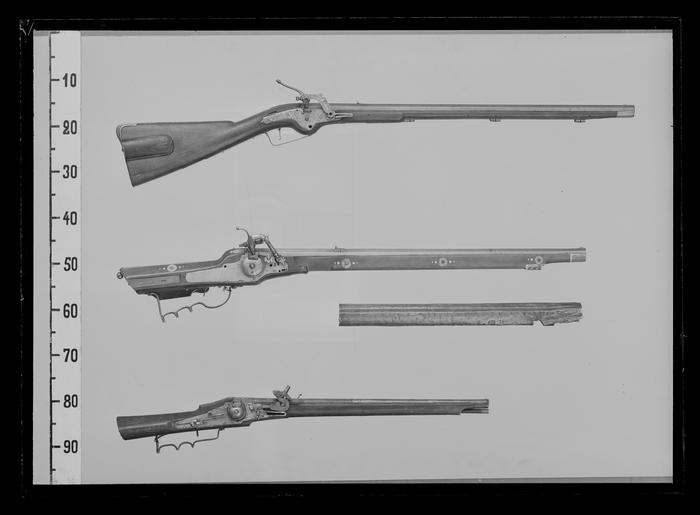 | Keywords: Hjullåslodbössa, hanspännslås, signerat Koch, 1600-talets andra hälft, möjligen Johan Koch - Livrustkammaren - 1206.tif Åttsidig fyraräfflad pipa av stål skålade bommar Rektangulärt svansskruvblad <br/>Riktmedel Inlaxat ståndsikte med u-formig skärm inlaxat spolformigt korn av mässing <br/>Fästning Tre häften Pipan fäst med krysskur samt tre pipstift av stål <br/><br/>Hjullås hanspännslås med plant låsbleck av västeuropeisk typ med fasade kanter på bakspetsen snidad dekor i form av en odjursmask I övrigt graverad dekor blomrankor bakom hjulet en ekorre framför hjulet signatur Koch Hjulet saknas ursprungligen fäst med studel kl 6 Fängpanna med fasetterad framkant låg rak krutskärm fästskruven saknas Platt konturerad hane i form av drake graverad dekor svansen upprullad rund hanskruven avbruten huvudet saknas Lös underkäke käkskruv med litet klotformigt huvud på svarvat skaft Långt svagt svängt fingergrepp avslutat med ekollonformig kula Kraftig fyrsidig hanfjäder med s-formigt nedåtsvängd övre arm under hanfoten Hjulaxeln förenad med slagfjädern saknas med kedjelänk Spänning med kedja som lindas runt hanaxeln Avtryckarstångens fästskruv och fjäder saknas <br/>Fästning Två låsskruvar en i kolvlådan <br/>Avtryckare med upprullad ände Avtryckarbleck med rundad ände <br/><br/>Helstock av valnöt med kolv av fransk typ med kindstöd och kolvlåda Snidad dekor vid kindstödets framände lister runt beslagen blad på kolvlådelocket Beslag av stål bakplåt med fågelhuvudliknande konturerad ryggflik två skruvar Kolvlådelockets ände stålbeslagen S-formigt svängt välvt sidbleck med i mitten en oval plåt Tre svarvade rörkor slät konturerad spets Näsband med bakåtriktad spets S-formig vinkelböjd varbygel bygeldelen svagt profilerad med mittlist framtill avslutad med treklöver bakre armen slät välvd med rundad avslutning två skruvar original caption ca other date - 1650 1679 walnut e3 - eldvapen - stock material valnöt - steel e1247 - eldvapen - pipa lås riktmedel och beslag material stål - brass e4 - eldvapen - riktmedel material mässing g 4410 size mm 190 size mm 732 pipa size mm 1135 LRK Nils von Lantingshausen von Höpken Löjtnant Koch anv e2 - eldvapen - lås; Johan Koch Koch anv e2 - eldvapen - lås; Johan Koch place of origin original filename LN_B09190_012070 47845 inventory number LRK 11183 1206 CC0 Hjullåslodbössa hanspännslås signerat Koch 1600-talets andra hälft möjligen Johan Koch - Livrustkammaren - 1206-negative tif <gallery caption Different images of same object > File Hjullåslodbössa hanspännslås signerat Koch 1600-talets andra hälft möjligen Johan Koch - Livrustkammaren - 1204 tif File Hjullåslodbössa hanspännslås signerat Koch 1600-talets andra hälft möjligen Johan Koch - Livrustkammaren - 9764 tif </gallery> Wheellock musket images from Livrustkammaren Media contributed by LSH dim-with multiple size templates Media contributed by LSH unmatched creator Media contributed by LSH 2013-10 |