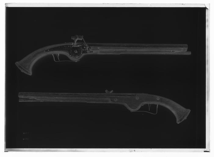 | Keywords: Hjullåspistol, västeuropeisk typ ca 1625-1650 - Livrustkammaren - 52258-negative.tif Rund slätborrad pipa på kammaren en stämpel i form av en öppen krona samt till v därom en otydlig rektangulär bokstavsstämpel På kammarens undersida en otydlig rund stämpel liknande G Smalt svansskruvblad med rundad bakände och något välvd ovansida <br/>Fästning Två häften Pipan fäst med krysskruv underifrån samt två ej ursprungliga pipstift av trä <br/><br/>Hjullås nedsvängt för hjulet bakre delen välvd vid hjulet fasade kanter Mellan hjul och hane en otydlig oregelbunden stämpel O S Utvändigt hjul fäst med studel kl 6 Fängpanna med fasad ytterkant och låg krutskärm fängpannelock med rörlig arm smal cylindrisk tryckknapp med litet välvt huvud Hane med rak kropp och hals fasad kant på kroppen Kantiga käkar underkäken lös käkskruv med kubiskt huvud Hanfjäder med fasade kanter eldstålsliknande studel <br/>Fästning Tre låsskruvar <br/>Nästan rak avtryckare med fjäder utgående från nederänden <br/><br/>Helstock av lövträ alm nedåtsvängd kolv med ovalt tvärsnitt spetsoval kolvände med stålband b 8 mm runtom rund mittknapp av stål Framstock med profilerade kanter Bandformigt näsband med ändar vikta över framstockens kanter En bandformig rörka av stål I vinkel böjd bandformig varbygel inskruvad i kolven baktill framtill fäst med skruv på hjulrundningen Krysskruvens hål till h om mittlinjen och åtkomlig utan att varbygeln avlägsnas <br/><br/>Tillbehör Laddstock av trä l 388 mm avplanad i nederänden på ett 80 mm långt parti Frantill ett stålrör l 45 mm i framänden ett runt hål gängat original caption ca other date - 1625 1650 size mm 404 pipa size mm 590 g 1200 LRK Carl Filip Sack friherre 1876-1931 Brömsebro-freden 300 år 1945 Skepp i strid 1991-2003 Skepp i strid Vasamuseet 2005-2009 krona öppen 1921 252 anv e1 - eldvapen - pipa; anonym kontrollör krona öppen 1921 252 anv e1 - eldvapen - pipa; anonym kontrollör place of origin original filename LN_B06076_008956 54185 inventory number LRK 17590 52258 CC0 Hjullåspistol västeuropeisk typ ca 1625-1650 - Livrustkammaren - 52258 tif <gallery caption Different images of same object > File Hjullåspistol västeuropeisk typ ca 1625-1650 - Livrustkammaren - 60819 tif File Hjullåspistol västeuropeisk typ ca 1625-1650 - Livrustkammaren - 77938 tif </gallery> |