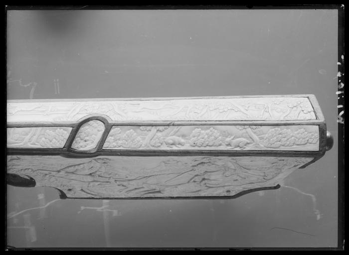 Keywords: Hjullåsstudsare, Westphalen ca 1660 - Livrustkammaren - 36191.tif LSH artwork sv Åttsidig sjuräfflad pipa bombredd 2 8 mm Rektangulärt svansskruvblad På kammaren en sköldformig stämpel med hand och därovanför tre otydliga bokstäver G H N LRK vägl 1921 155 Dekor i form av graverade blomrankor på kammaren runt siktet och bakom kornet På kammaren dessutom ett fält med landskap med en hjort och två hundar Riktmedel Ståndsikte av stål med bred u-formig skärm Spolformigt korn av mässing båda inlaxade två laxningar för siktet Fästning Pipan fäst med krysskruv underifrån främre varbygelskruven samt tre pipstift av trä Hjullås av tysk typ plant låsbleck l 205 mm Dekor i form av graverade blomrankor i låg relief mot mörkskrafferad bakgrund Bakom hjulet ett ovalt fält med landskap med en kavalleristrid Utanpåliggande hjul fäst med halvcirkelformig uppåt breddad ring fäst med två skruvar kl 3 och 9 Svängd eldskärm avslutad med horisontell hjärtformig spets Fängpannelock med rörlig arm lockets framkant fasad och försedd med graverad dekor svängt rundat fingergrepp framtill avslutat med ett treflikigt blad Hane med fyrsidig kropp med rundad räfflad utsida ringformig hanhals med stor skärm lös överkäke Hals och käkar graverade som fågelhuvuden Uppåtböjt fingergrepp avslutat med en rund platt med spiralgravering Käkskruv med fyrsidigt huvud upptill koniskt med kulformig avslutning Hanfjäder med fasade kanter konturerad studel med glasögonformig genombrytning Avtryckarstången och fängpannelockets stoppfjädrar blånerade Fästning Två låsskruvar Avtryckare med konturerat och profilerat snälltryck Helstock av rödmålat trä rödbok nästan helt täckt med elfenbensplattor med snidad dekor Kolv av tysk typ med kolvlåda och vinge framtill avslutad med volut Den snidade dekoren föreställer landskap med jaktscener se Hellner Kolvlådelock av elfenben Bakplåt av elfenben med en satyr Kolvkula av stål Spetsrörka av elfenben med maskaron Bred varbygel av stål med tre fingerlägen korta genombrutna armar på bygeln graverad rankdekor samt ovalt fält med landskap med jägare hund och hjort Tillbehör Laddstock av rödmålat trä l 781 mm i ena änden ett invändigt gängat stålrör l 120 mm I den andra en benskoning l 42 Plattan kommer fram ur munnen på ett snidat fiskhuvud Gåva till Karl XI från landshövdingen friherre Augustin Leijonsköld 1634-1682 original caption ca 1660 steel e1247 - eldvapen - pipa lås riktmedel och beslag material stål - brass e4 - eldvapen - riktmedel material mässing - ivory e78 - eldvapen - stockbeslag och stockdekor material elfenben - beech e3 - eldvapen - stock material rödbok g 4280 size mm 774 pipa size mm 1068 LRK Karl XI av Sverige Augustin Leijonsköld basutställning Gallica 1945 Livrustkammarens basutställning 1978 Krigets prakt 2003-2004 place of origin DE Westphalia original filename LN_B16594_019474 39530 inventory number LRK 2920 36191 CC0 Hjullåsstudsare Westphalen ca 1660 - Livrustkammaren - 36191-negative tif <gallery caption Different images of same object > File Hjullåsstudsare - Livrustkammaren - 95341 tif File Hjullåsstudsare Westphalen ca 1660 - Livrustkammaren - 43315 tif File Hjullåsstudsare Westphalen ca 1660 - Livrustkammaren - 27630 tif File Hjullåsstudsare Westphalen ca 1660 - Livrustkammaren - 19068 tif File Hjullåsstudsare Westphalen ca 1660 - Livrustkammaren - 10775 tif File Hjullåsstudsare Westphalen ca 1660 - Livrustkammaren - 78992 tif File Hjullåsstudsare Westphalen ca 1660 - Livrustkammaren - 44749 tif File Hjullåsstudsare Westphalen ca 1660 - Livrustkammaren - 60420 tif File Hjullåsstudsare Westphalen ca 1660 - Livrustkammaren - 1946 tif File Hjullåsstudsare Westphalen ca 1660 - Livrustkammaren - 26180 tif File Hjullåsstudsare Westphalen ca 1660 - Livrustkammaren - 61870 tif File Hjullåsstudsare - Livrustkammaren - 51368 tif File Hjullåsstudsare Westphalen ca 1660 - Livrustkammaren - 53310 tif File Hjullåsstudsare Westphalen ca 1660 - Livrustkammaren - 1945 tif File Hjullåsstudsare Westphalen ca 1660 - Livrustkammaren - 10506 tif File Hjullåsstudsare Westphalen ca 1660 - Livrustkammaren - 78991 tif File Hjullåsstudsare Westphalen ca 1660 - Livrustkammaren - 78990 tif File Hjullåsstudsare Westphalen ca 1660 - Livrustkammaren - 60464 tif File Hjullåsstudsare Westphalen ca 1660 - Livrustkammaren - 77541 tif File Hjullåsstudsare Westphalen ca 1660 - Livrustkammaren - 70431 tif File Hjullåsstudsare Westphalen ca 1660 - Livrustkammaren - 71153 tif File Hjullåsstudsare Westphalen ca 1660 - Livrustkammaren - 61871 tif File Hjullåsstudsare Westphalen ca 1660 - Livrustkammaren - 60459 tif File Hjullåsstudsare Karl XI - Livrustkammaren - 31010 tif File Hjullåsstudsare Westphalen ca 1660 - Livrustkammaren - 53309 tif File Hjullåsstudsare Westphalen ca 1660 - Livrustkammaren - 70432 tif File Hjullåsstudsare Westphalen ca 1660 - Livrustkammaren - 70433 tif </gallery> Muskets Media contributed by LSH dim-with multiple size templates Media contributed by LSH 2016-12 |