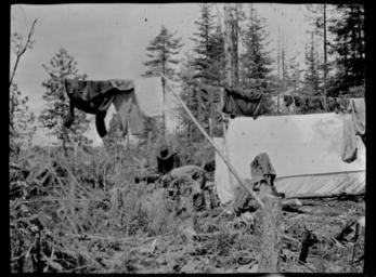 Keywords: 1900s men clothes camping blackandwhite monochrome outdoor black and white "Gow Ganda & our camp there" Tent with two men in front of it and clothes hanging on a line. One of a set of photographs from a trip to "Gow Ganda", May 19 - June 28, 1909. "Gow Ganda & our camp there" Tent with two men in front of it and clothes hanging on a line. One of a set of photographs from a trip to "Gow Ganda", May 19 - June 28, 1909. |