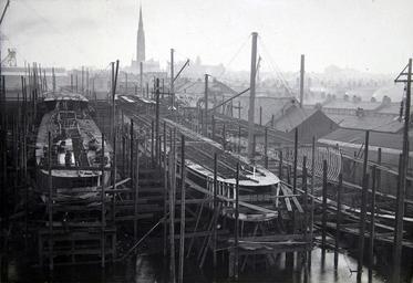 | Keywords: ww1 royal navy royalnavy first world war firstworldwar hawthorn leslie hawthornleslie shipbuilding hebburn hms pigeon hmspigeon hms plover hmsplover hms sarpedon hmssarpedon destroyer torpedo boat destroyer torpedoboatdestroyer shipyard maritime heritage maritimeheritage black and white photograph blackandwhitephotograph industry structure platform plank stocks 5 november 1915 5november1915 warships construction vessel ship design striking church spire buildings chimney roof wall smoke telegraph pole telegraphpole wire pole window curtain deck timber debris crane steel metal sky water shadow reflection rope mast fence soil outdoor blackandwhite waterfront skyline black and white HMS Pigeon, HMS Plover and HMS Sarpedon on the stocks at the Hawthorn Leslie shipyard, Hebburn, 5 November 1915 (TWAM ref. 4471/3).  The shipyard of R. & W. Hawthorn Leslie at Hebburn built many fine warships. During the First World War the firm built 2 light cruisers, 3 destroyer leaders and 25 torpedo boat destroyers. The firm also built machinery and boilers for 2 battleships, and a further 3 light cruisers. These and other warships built by Hawthorn Leslie before the War, are remembered in this set.   There are remarkable images of warships under construction at Hebburn, as well as fascinating shots of the people who attended the launches. The set also contains majestic views of the ships at sea. The images are not only a testimony to the skill of those who designed and built these ships but also to the courage of those who sailed in them.  (Copyright) We're happy for you to share these digital images within the spirit of The Commons. Please cite 'Tyne & Wear Archives & Museums' when reusing. Certain restrictions on high quality reproductions and commercial use of the original physical version apply though; if you're unsure please email archives@twmuseums.org.uk   HMS Pigeon, HMS Plover and HMS Sarpedon on the stocks at the Hawthorn Leslie shipyard, Hebburn, 5 November 1915 (TWAM ref. 4471/3).  The shipyard of R. & W. Hawthorn Leslie at Hebburn built many fine warships. During the First World War the firm built 2 light cruisers, 3 destroyer leaders and 25 torpedo boat destroyers. The firm also built machinery and boilers for 2 battleships, and a further 3 light cruisers. These and other warships built by Hawthorn Leslie before the War, are remembered in this set.   There are remarkable images of warships under construction at Hebburn, as well as fascinating shots of the people who attended the launches. The set also contains majestic views of the ships at sea. The images are not only a testimony to the skill of those who designed and built these ships but also to the courage of those who sailed in them.  (Copyright) We're happy for you to share these digital images within the spirit of The Commons. Please cite 'Tyne & Wear Archives & Museums' when reusing. Certain restrictions on high quality reproductions and commercial use of the original physical version apply though; if you're unsure please email archives@twmuseums.org.uk    |