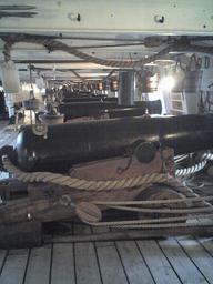 Keywords: HMS Warrior Gun Deck 68pdrs.png Gun deck of HMS Warrior 1860 as restored showing the broadside of 68pdr guns Taken by me Feb 07 The Land <br>Originally uploaded to en Wikipedia as en Image HMS Warrior Gun Deck 68pdrs png by The Land 19 February 2007 2007-02-07 The Land en Image HMS Warrior Gun Deck 68pdrs png Interior of HMS Warrior at Portsmouth Historic Dockyard ML 68 pounder gun |