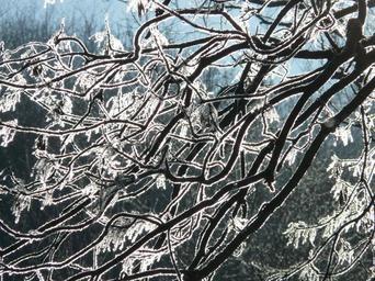 Keywords: hoarfrost tree road branch frost cold winter frozen back light