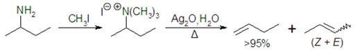 Keywords: Hofmann degradation or elimination.PNG Hofmann degradation or elimination Source Myself using ISIS/Draw Date 18 July 2007 Elimination reactions Functional group interconversions 2007-07-18 own assumed Apcpca