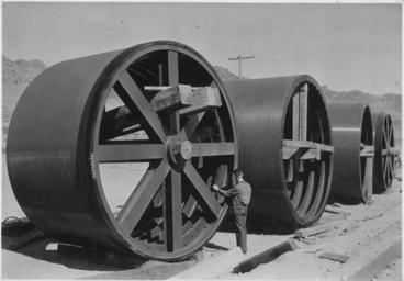 View Original:Hoisting_drums_for_permanent_150-ton_cableway_in_storage_at_Boulder_City_yards_-_NARA_-_293820.jpg (3000x2091)
