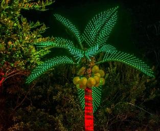 Keywords: holiday decorations botanical gardens florida christmas xmas season ornament festive merry trees colorful palm trees coconuts night photography