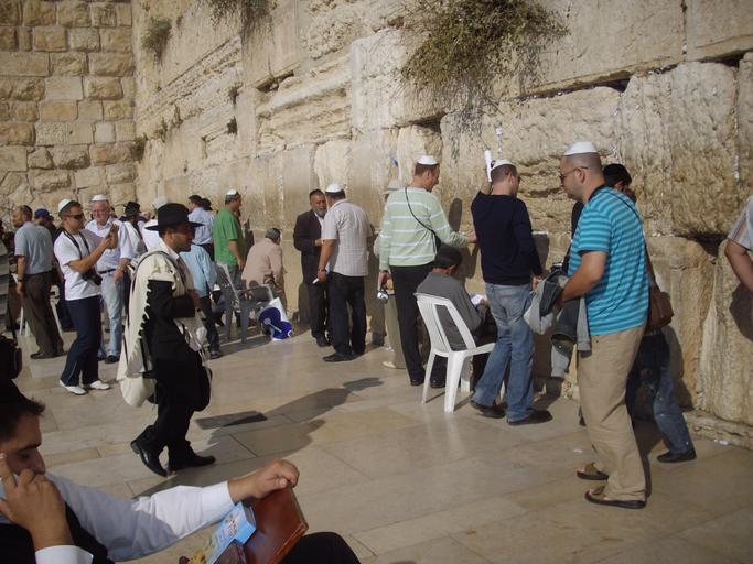Keywords: 'Holiest Jewish Shrine,THE WAILING WALL(KOTEL) in JERUSALEM'.JPG en The Wailing Wall Old Jerusalem City Thursday 30-10-2008 Own Rudolph A furtado People at the Western Wall