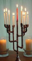 Keywords: Holly Days Menorah.jPG en 13 candle candelabra known as a Holly Days Menorah The image is of one made from 1/4 inch copper pipe with 12 candle positions to be lit on each of the 12 nights of Holly Days and one central Shamus candle Build by Anine Booth own Nesdon 2009-12-20 Cc-zero Menorah Candle chandeliers |